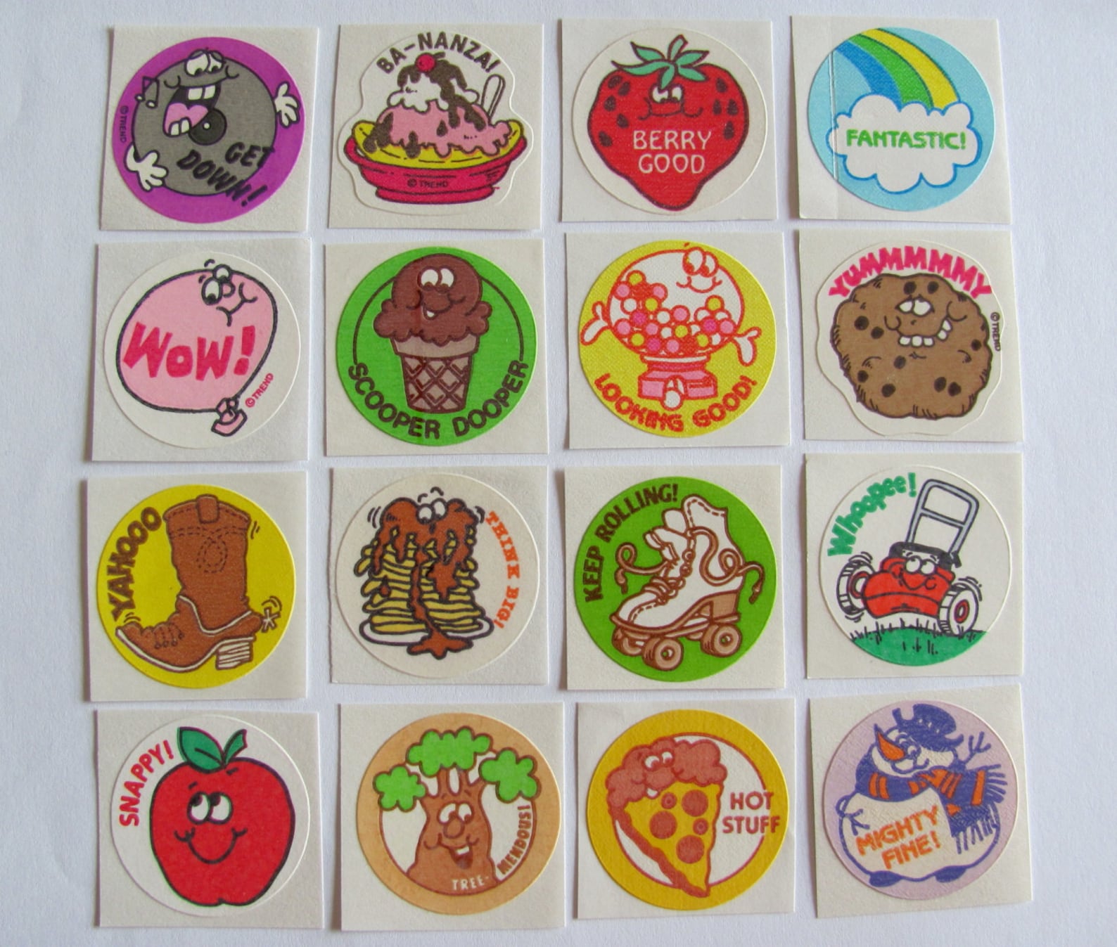 Welcome the next installment of my year-long look back at the decade that was ruled by big hair and bigger egos. We have a great online selection at the lowest prices with Fast Free shipping on many items. These stickers came in sets of thirty six Smelly Packs with two sheets of eighteen stickers each sheet featuring three scents for a total of six scents per pack. Sometimes referred to as stinky stickers or smelly stickers the mere sight of them bring back.